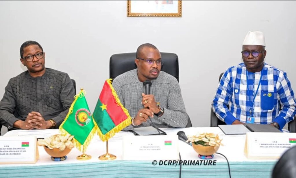 Le Premier ministre, Chef du Gouvernement, Rimtalba Jean Emmanuel Ouรฉdraogo, a rencontrรฉ, le samedi 27 septembre 2025 ร la Reprรฉsentation permanente du Burkina Faso ร New York, la communautรฉ burkinabรจ vivant aux รtats-Unis. Cette rencontre fraternelle a permis dโexposer les avancรฉes de la Rรฉvolution progressiste populaire et de rรฉaffirmer la dรฉtermination du Burkina Faso ร poursuivre la lutte pour sa souverainetรฉ.