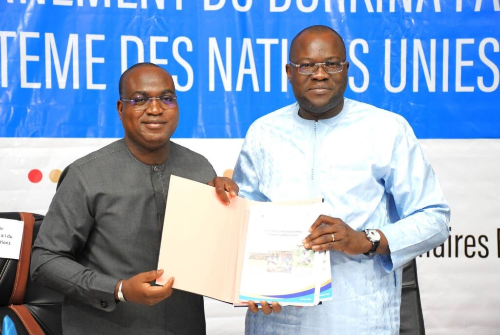 (Ouagadougou, le 6 fรฉvrier 2026). Le ministre de l’Economie et des Finances, Dr Aboubakar NACANABO et le Coordonnateur par intรฉrim du Systรจme des Nations unies, Maurice AZONNANKPO, ont procรฉdรฉ ce vendredi 6 fรฉvrier, ร  la signature de l’accord entre le Burkina Faso et l’institution onusienne, pour la mise en oeuvre de trois programmes transformateurs.