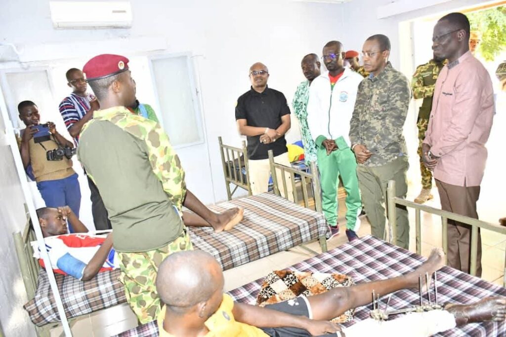 A l’infirmerie militaire de Gaoua, l’équipe gouvernementale a encouragé et exprimé son souhait de prompt rétablissement aux blessés de guerre. Elle a aussi salué le courage et le sacrifice de ses braves combattants qui ont défendu le Burkina Faso.