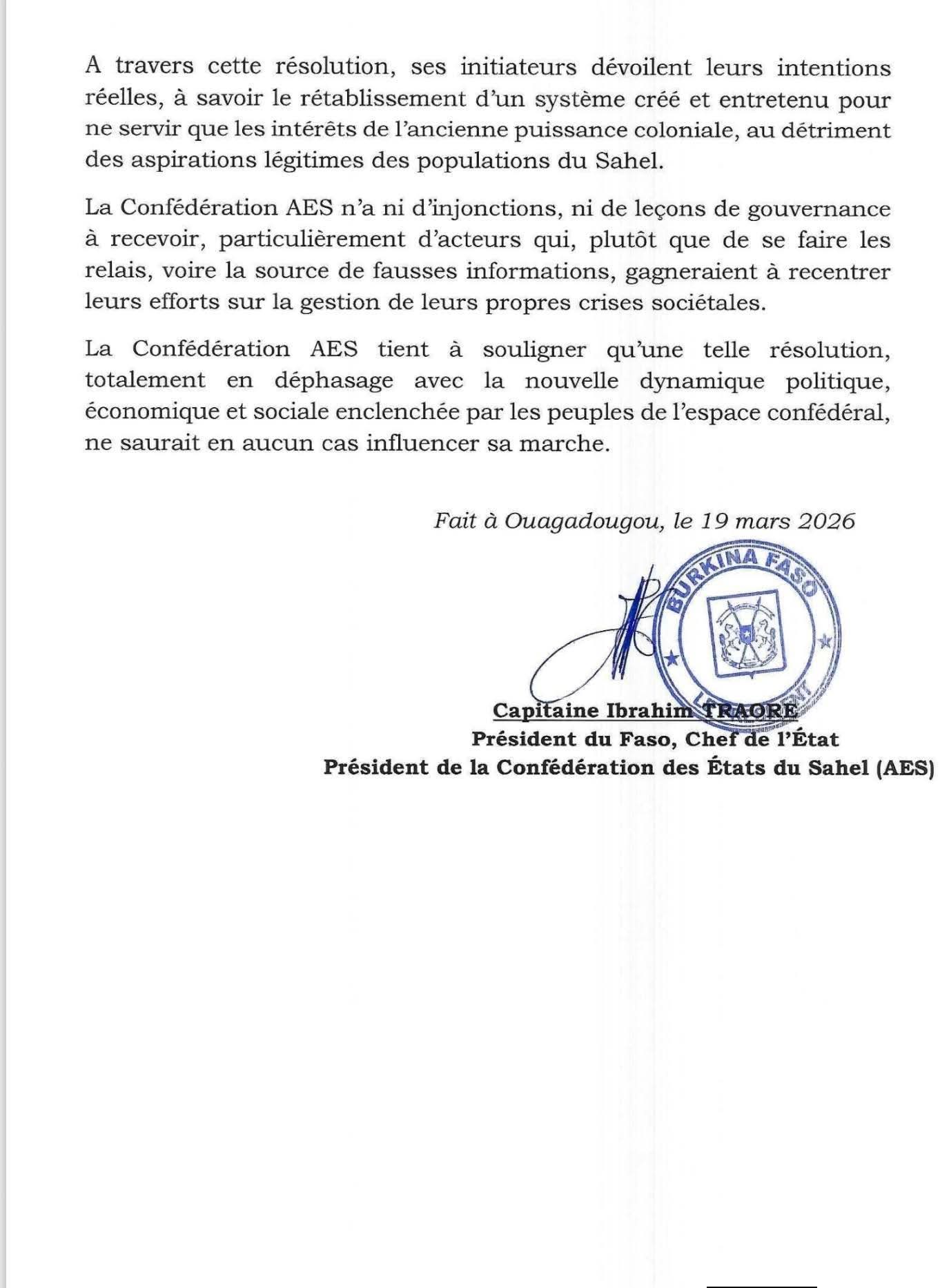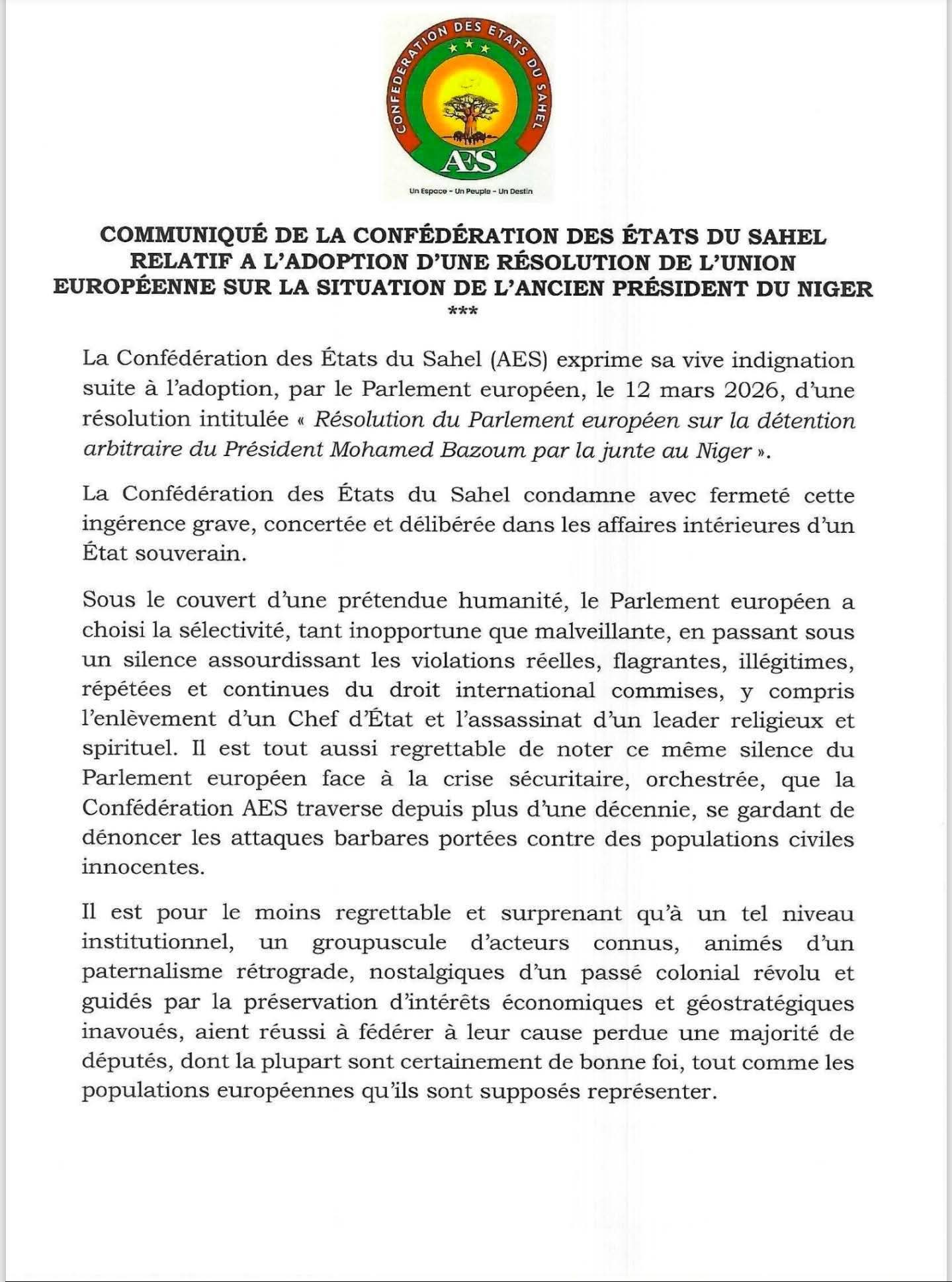 COMMUNIQUÉ DE LA CONFÉDÉRATION DES ÉTATS DU SAHEL