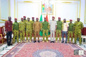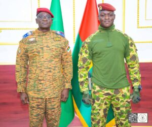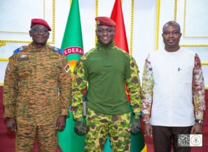 (Ouagadougou, 08 janvier 2026). Promu Général de division par décret signé le 30 décembre 2025, l’Officier général des Forces Armées Nationales (FAN), Célestin SIMPORÉ a reçu les attributs que lui confère son nouveau grade, ce jeudi au Palais présidentiel de Koulouba. C’est Son Excellence le Capitaine Ibrahim TRAORÉ, Président du Faso, Chef de l’État, Chef Suprême des Forces Armées Nationales qui lui a porté ses épaulettes et lui a remis son béret, le tout flanqué des trois étoiles.