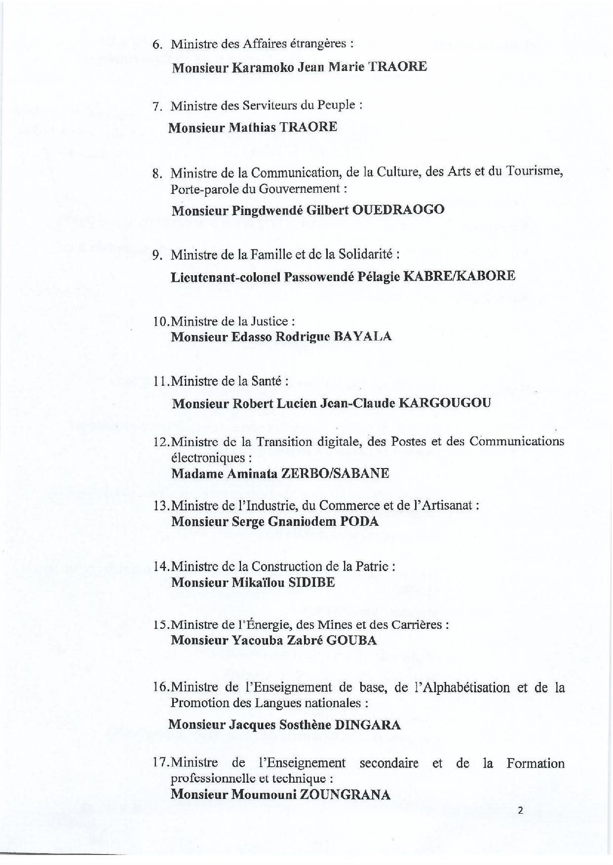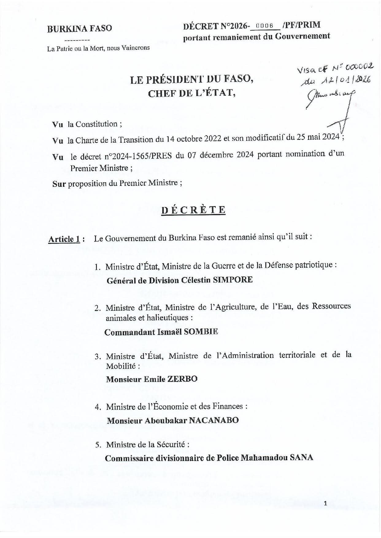 Remaniement du Gouvernement du Burkina Faso
