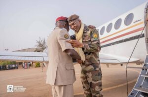 Arrivée en premier, la délégation malienne, conduite par le ministre d’Etat, ministre de la Défense et des Anciens Combattants, le Général du Corps d’Armée Sadio CAMARA, a été accueillie à sa descente d’avion par le ministre d’Etat, ministre de la Guerre et de la Défense patriotique.